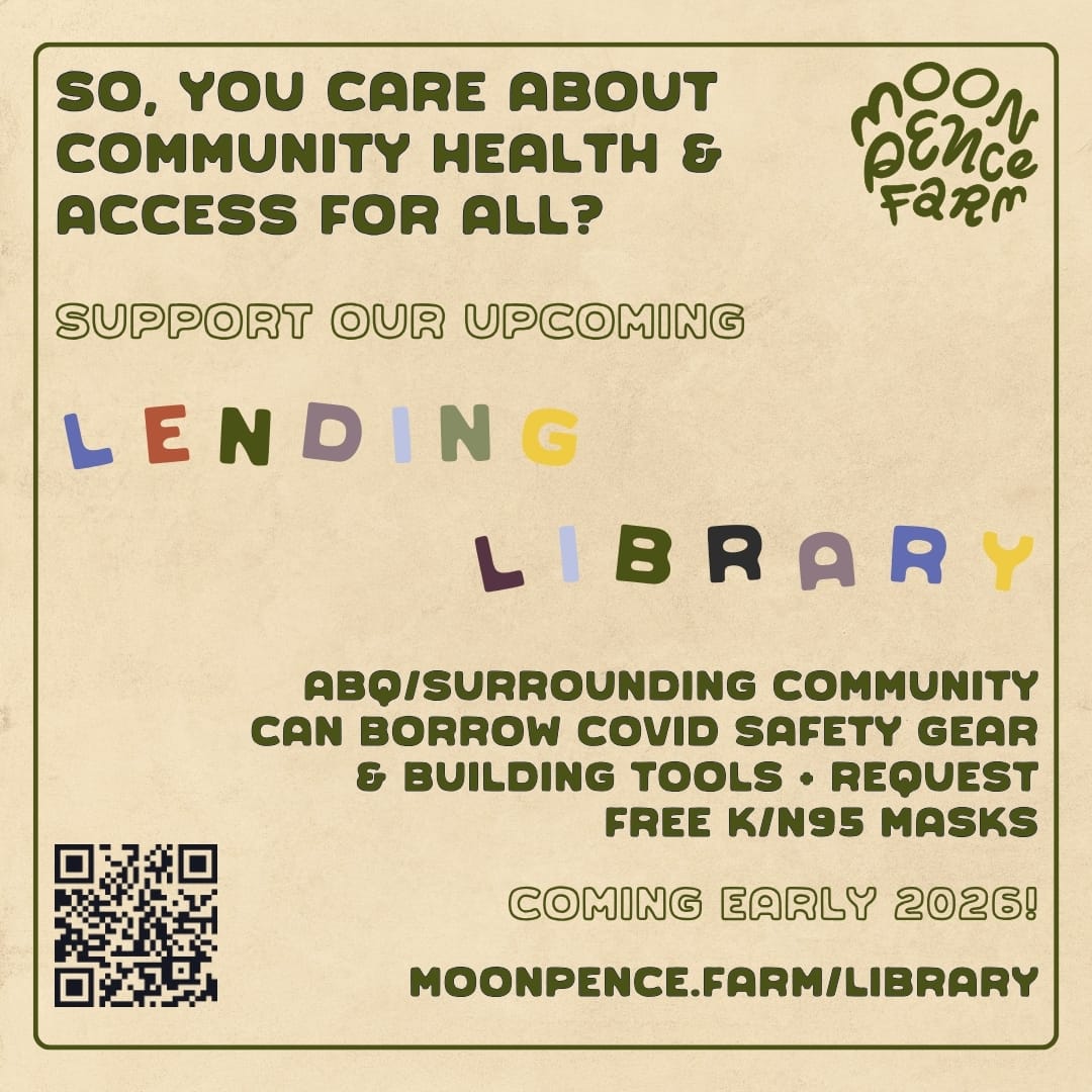 Come snag our farm goods & medicines by Serenus Herbs! We'll have MPF merch to support our ongoing farm buildout, plus info on our upcoming Lending Library, a new free resource for our local community surrounding ABQ.